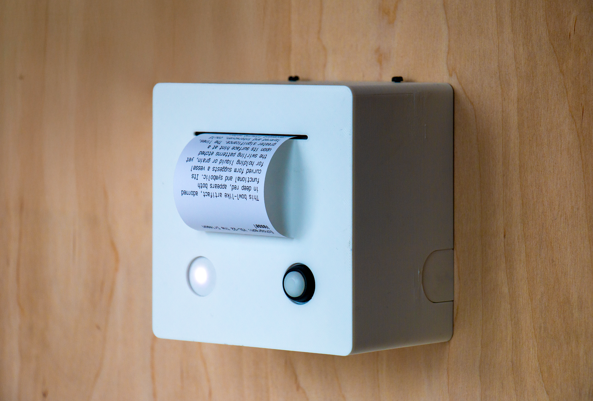 The Echograph Printer makes short, AI-generated field reports called Echographs. It guesses what is in images taken by participants, blending fact and imagination. Each print invites you to wonder where the object came from, how it might have been used, and what it could have meant.